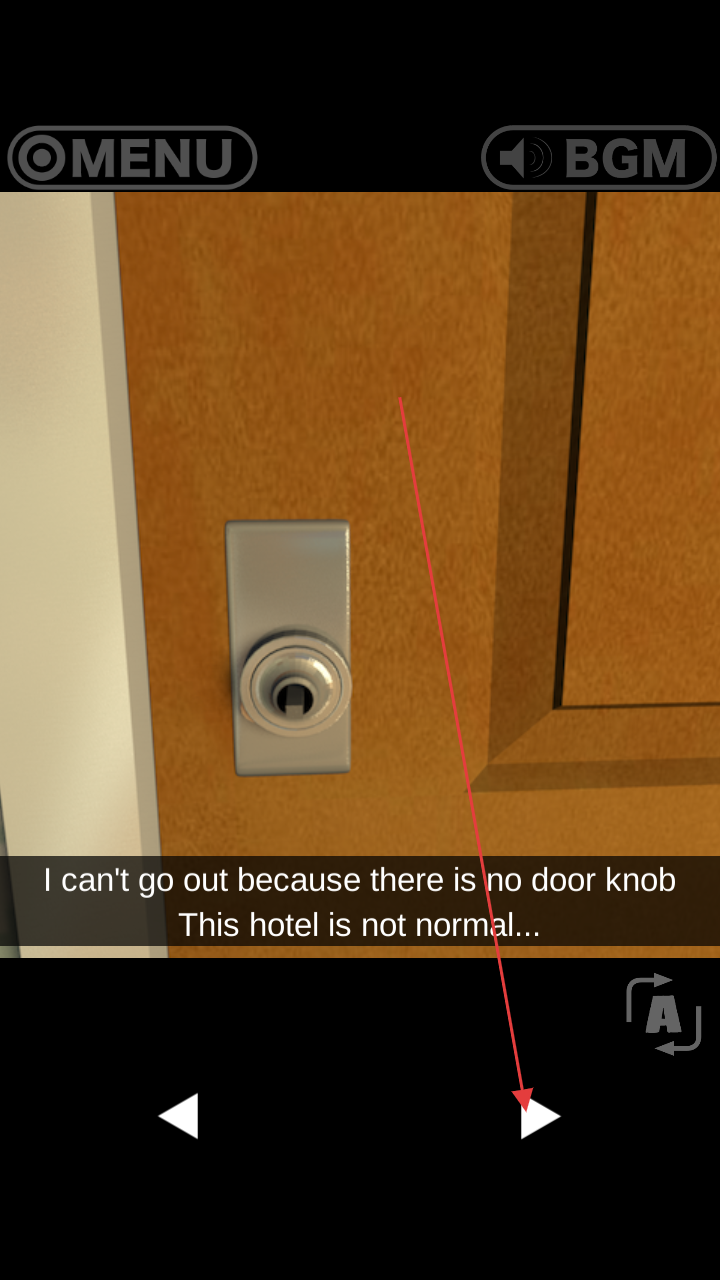 2、在酒店场景中,遇到无门把手的门,通过点击(TAP)探索场景、检查物品、选择道具,尝试离开房间。