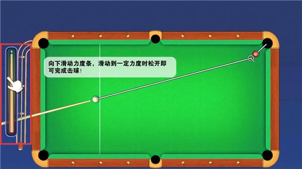 1、点击操控精准击球:点击屏幕调整球杆方向,拖动控制出杆力度,完成旋转、反弹等花式击球,精准将目标球打入球袋。