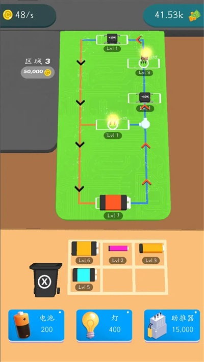 2、精准把握元件参数与组合方式,巧妙运用串联并联规则,通过收集特殊元件解锁隐藏关卡,预判电流走向提前布局,让玩家沉浸在科技与智慧的碰撞中。