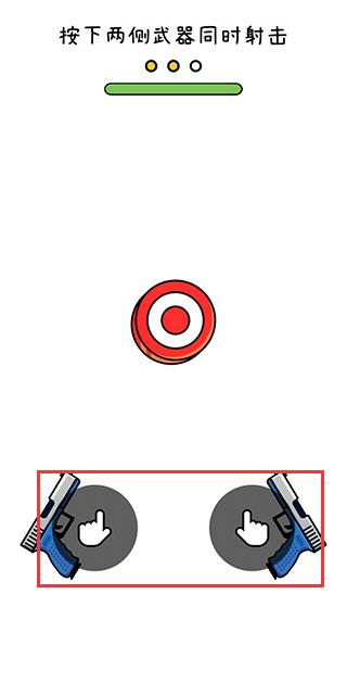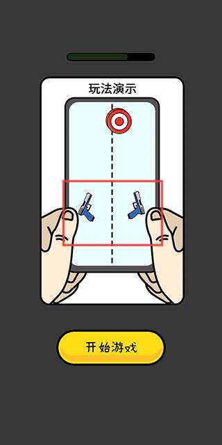 1、游戏的玩法非常简单,左右两侧各有一支枪,目标会从下往上出现,其运动轨迹就是屏幕中央的虚线。