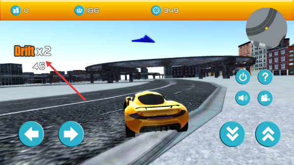 3、过弯道时,长按方向键+刹车,触发漂移(Driftx2),积累漂移次数,拿高分。