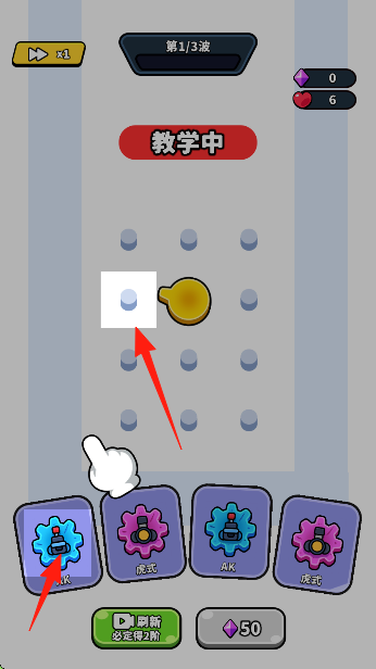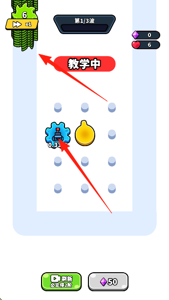 1、开启游戏界面,在新手引导下安装基础齿轮,为初始武器充能,完成首次齿轮战斗闯关。