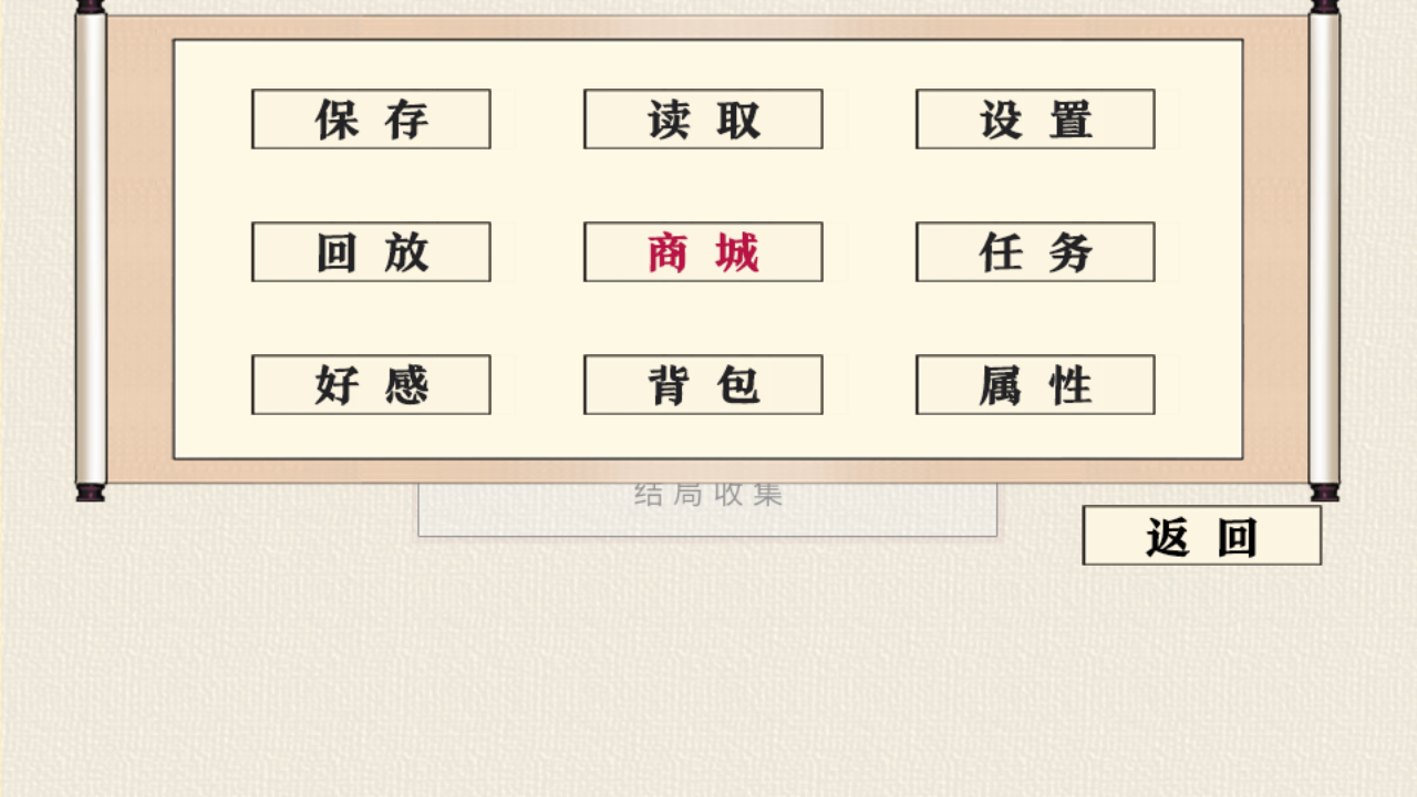 3、用【保存】【读取】管理进度,【设置】调参数,【回放】重温情节;借【商城】购道具,【任务】【背包】辅助游玩,【好感】【属性】了解状态,优化游戏体验。