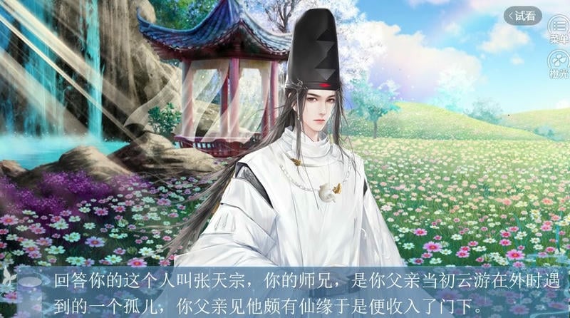 3、用【存入档案】【读取档案】管进度,【剧情回放】重温情节,【环境设置】调参数;借【人物好感】【个人属性】了解状态,【商城界面】购物品。