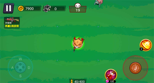 2、遇僵尸(红箭头),调整走位(绕后躲避),长按射击键,消耗怪物血量,注意子弹数(40/400)。