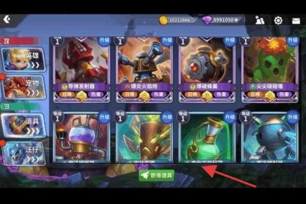3、打开编队界面(红箭头),升级道具(导弹熔炉),调整阵容,参与“神魔战场”,策略对战,提升段位。