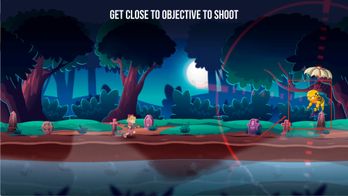 3、接近目标时保持适当距离,当出现"GET CLOSE TO OBJECTIVE TO SHOOT"提示后,使用红色瞄准线锁定黄色目标进行射击。