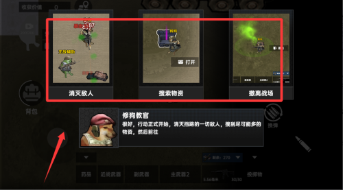 1、进入游戏后先跟随狗狗教官完成基础训练,熟悉射击、移动和掩体切换等操作,打好战斗基础。