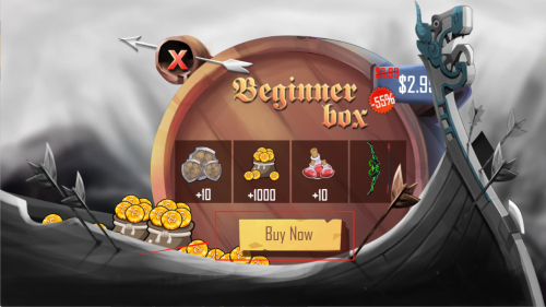 2、进入商店后选择"Beginner box"新手礼包,支付$2.99购买可立即获得1000金币和10个特殊道具,快速提升初期战力。