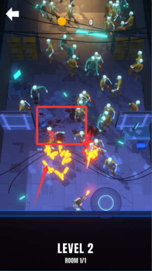 1、核心玩法围绕走位射击展开,保持移动是关键。被尸群包围时需要快速切换突围武器,或使用场景道具解围。