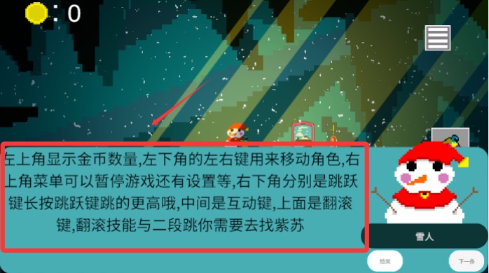 2、移动到雪人处雪人会为你讲解基本操作。