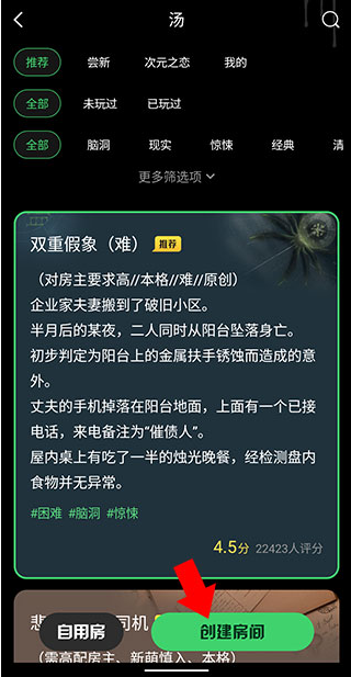 3、选择剧本,并点击创建房间,即可开始游戏。