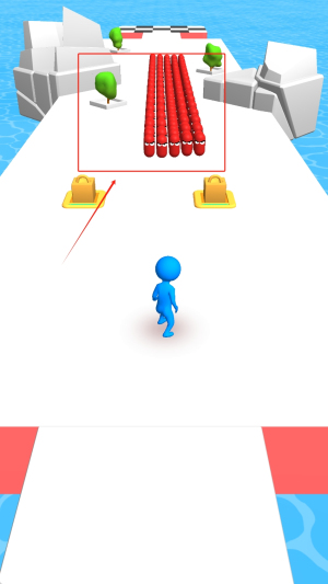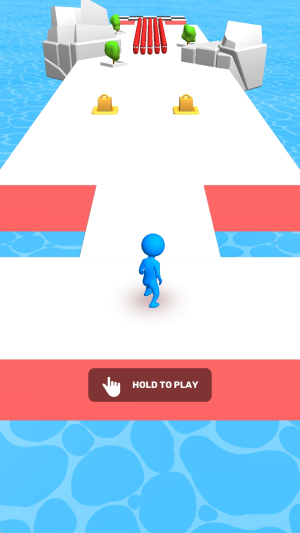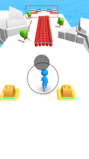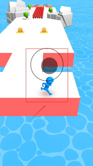1、操控蓝色小人沿白色平台奔跑,避开红色危险区域,利用环境指引规划安全路线。