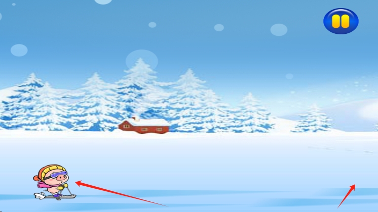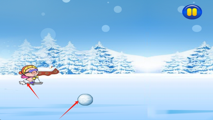 2、闯入冰川峡谷,巧妙躲避飞驰的冰锥与旋转的雪球,收集道具加速向前滑行。