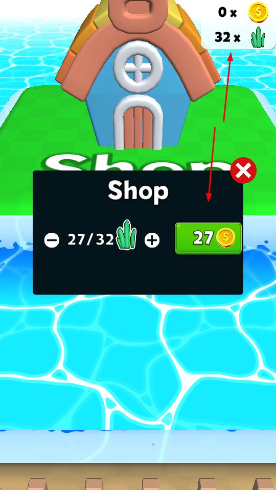 2、前往“Shop”建筑,消耗收集的资源和金币,兑换、购买新道具,助力后续经营。