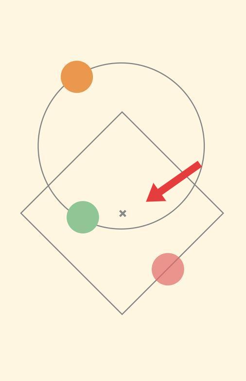 2、关卡内观察彩色圆点与几何图形(圆、菱形)的位置关系,规划移动或旋转,使圆点契合图形布局。