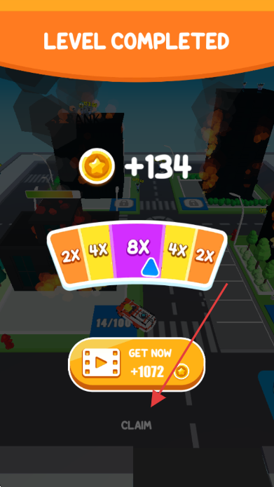 3、关卡完成后,点击下方【CLAIM】,领取134金币奖励。