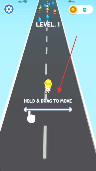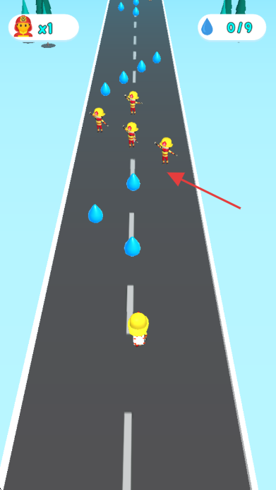 2、操控角色在道路上移动,收集蓝色水滴,同时应对前方敌人。