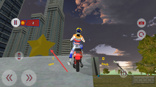 3、吃金色星星道具,攒金币(2000),提升摩托性能,完成街区挑战。