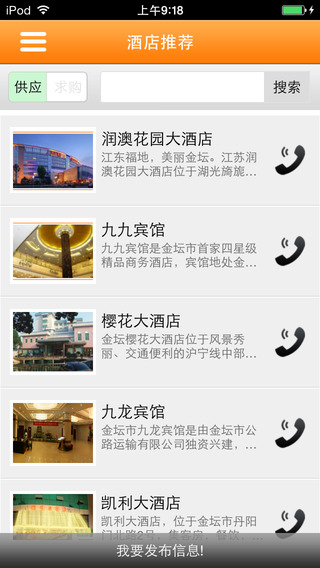 本应用利用列表的形式清晰的展示出各种酒店推荐的供求讯息。