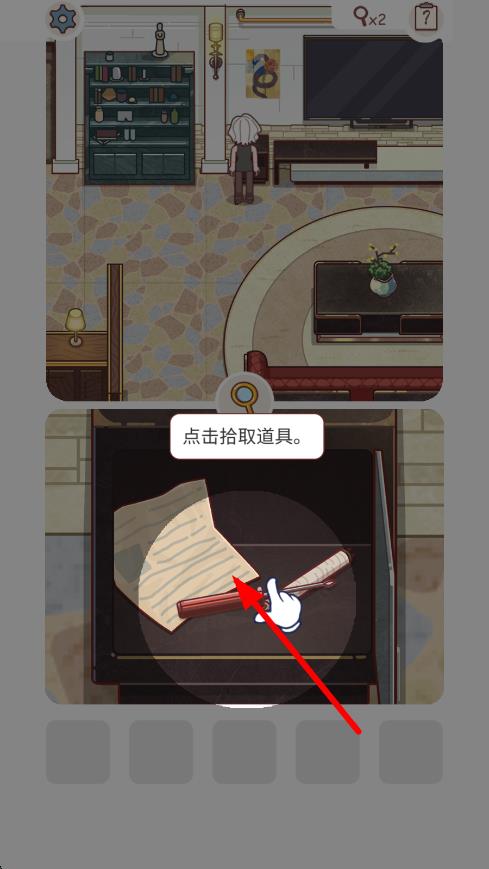 1、进入游戏后在卡通场景中点击可疑区域,如桌上歪斜的相框、抽屉缝隙露出的纸条,收集散落线索与道具。