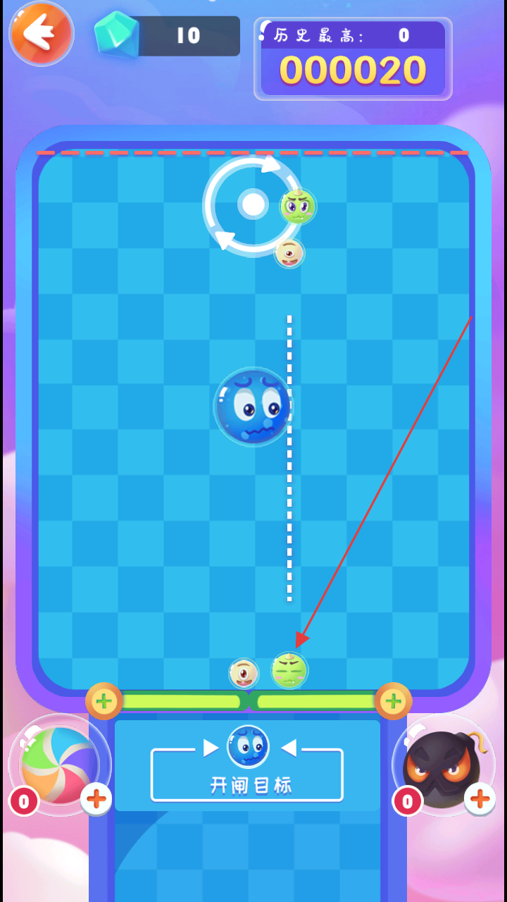 2、在游戏场景,观察小球布局,操作“开闸目标”控制释放,让小球碰撞,留意表情小球特性。