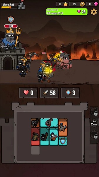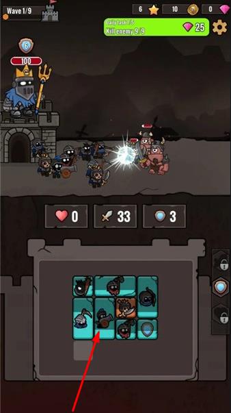 3、运用简单的点击、拖动操作完成城堡建设、军队训练与战斗指挥,在战场上放置合并士兵,策略性击败敌人。