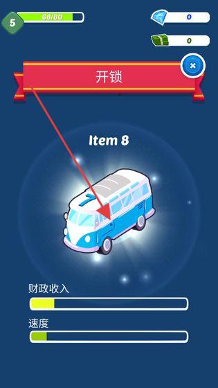 2、通过合并解锁新车型(如Item6、Item8),提升财政收入、速度等属性,积累金币。