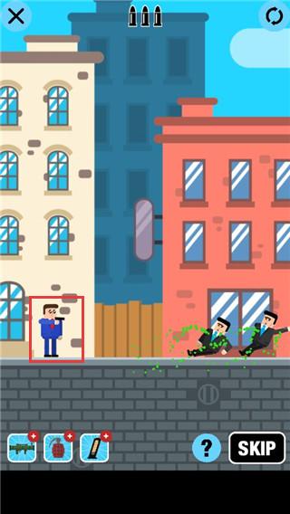 2、游戏中途,玩家在复杂场景中利用物理反弹原理射击敌人,解救人质或完成间谍任务,躲避敌方火力陷阱。