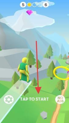 1、进入游戏界面后,点击“TAPTOSTART”按钮,让角色开始滑翔,开启冒险之旅。