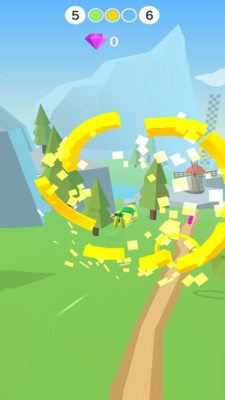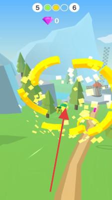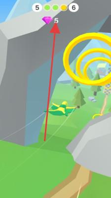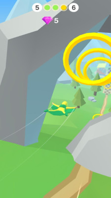 2、在滑翔过程中,操控角色穿越环形障碍,注意躲避,同时收集钻石(如数字显示的目标)。