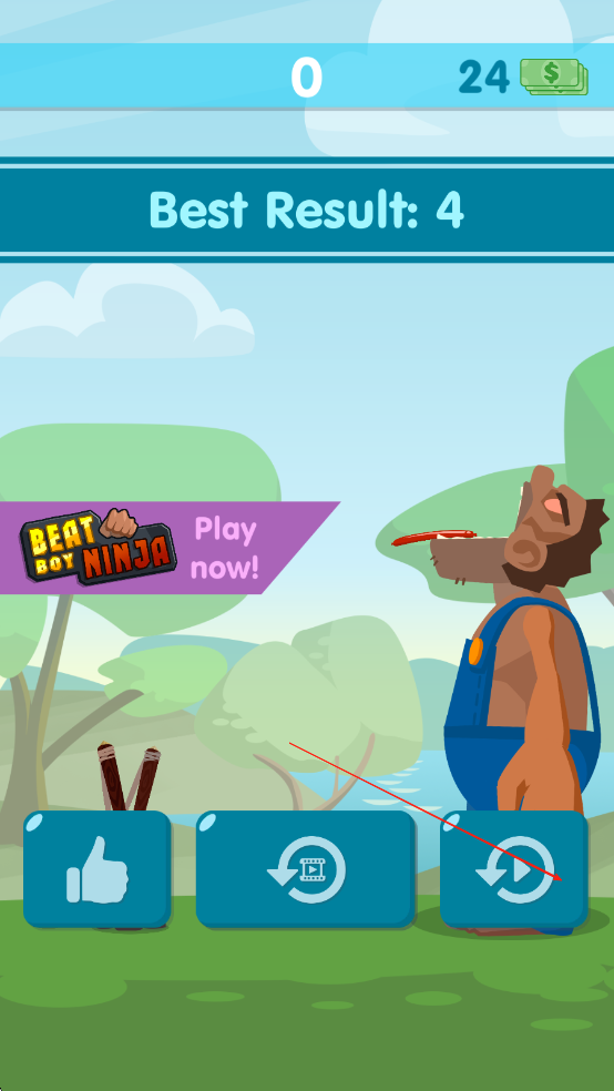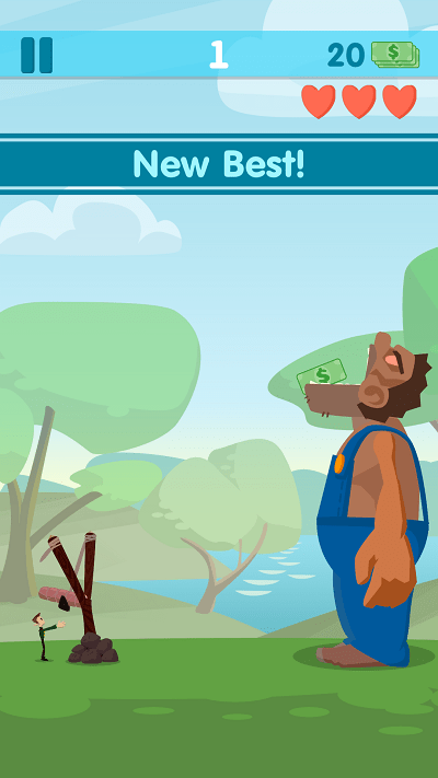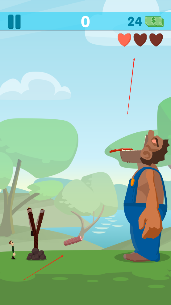 饥饿的巨人是一款以弹弓投喂为核心玩法的休闲趣味作品,玩家将操控小人站在巨人面前,用弹弓瞄准其张开的嘴巴,精准发射各类食物,采用简洁清新的画面风格,Q萌的小人和巨人造型搭配轻松的背景音乐,营造出诙谐有趣的氛围,玩家需掌握抛物线轨迹,调整发射角度与力度,将汉堡、水果等食物准确投入巨人口中。