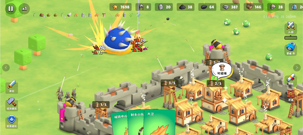 3、炮台立体防御:地面炮台(弩箭塔)守要道,空中炮台(魔能炮)打飞行单位,魔法炮台(符文塔)增幅伤害,覆盖全维度战场威胁。