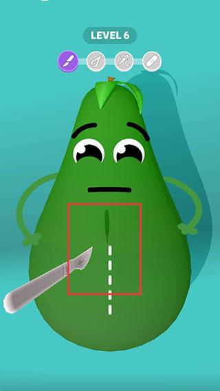 2、游戏中途,玩家使用手术刀、注射器等工具为苹果、香蕉等水果治疗腐烂、虫蛀等病症,完成诊疗获取收益。