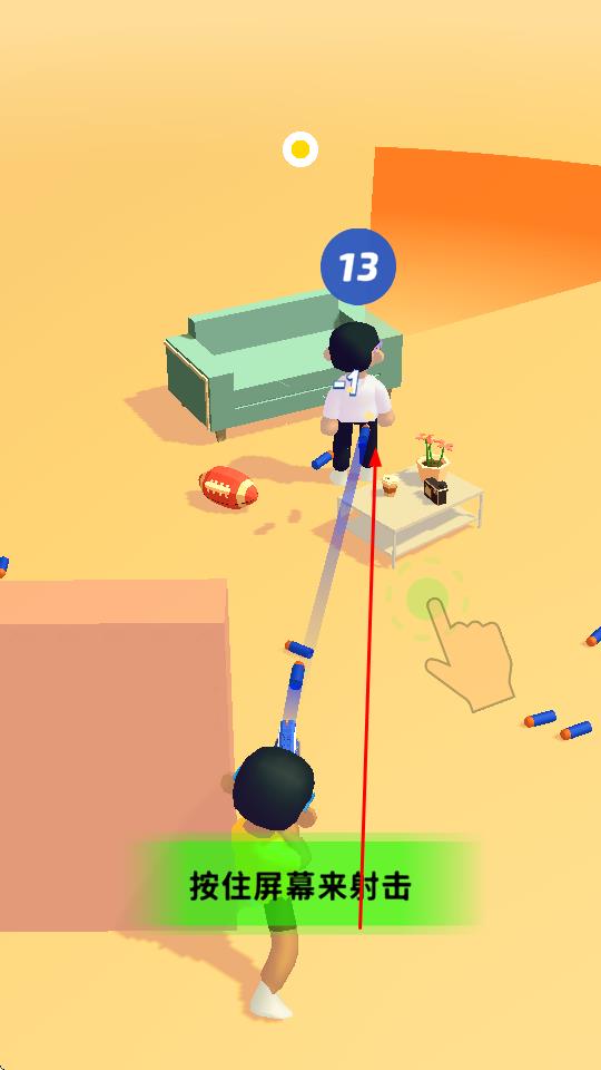 1、长按屏幕,控制角色发射软弹,瞄准目标,命中可推进进程。