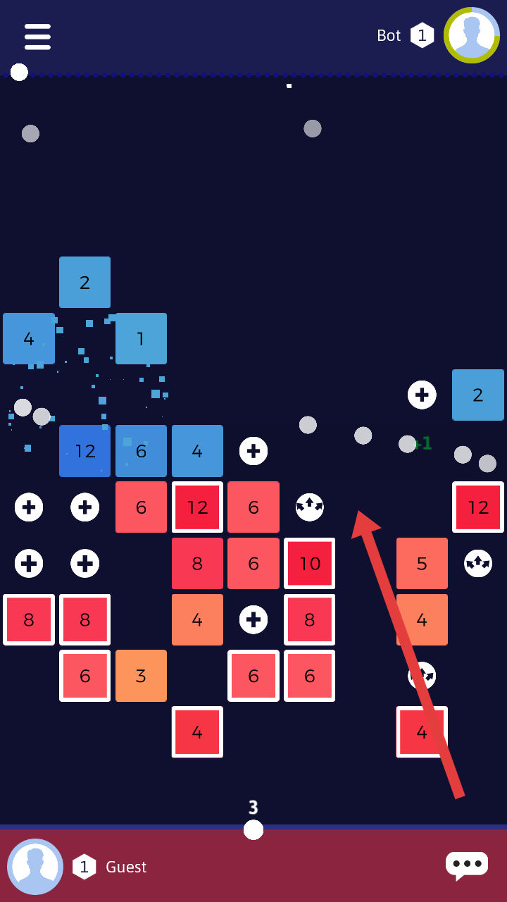 3、联机对战竞技比拼:在联机模式中,与对手比拼消灭砖块速度与分数,灵活应对随机陷阱方块,通过胜利积累积分提升排名解锁更多内容。