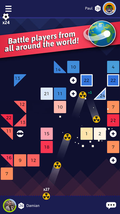 2、联机竞技社交互动:支持与自己的号朋友进行实时联机对战或匹配全球用户,在竞技中比拼消灭砖块的效率,增添社交互动乐趣与竞争成就感。
