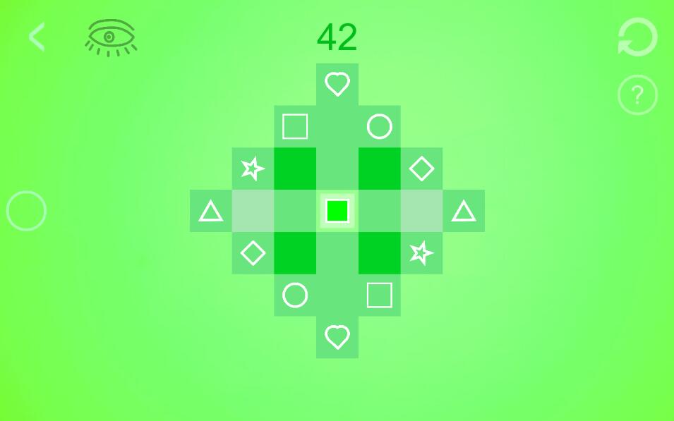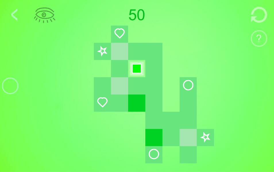2、屏幕拖动调节:使用左边单一圆形按钮拖动屏幕,全方位观察关卡布局,结合眼睛按钮调节颜色亮度,找到最佳解谜视角与策略。