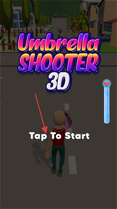 1、点击界面【Tap To Start】区域,启动《Umbrella Shooter 3D》游戏。