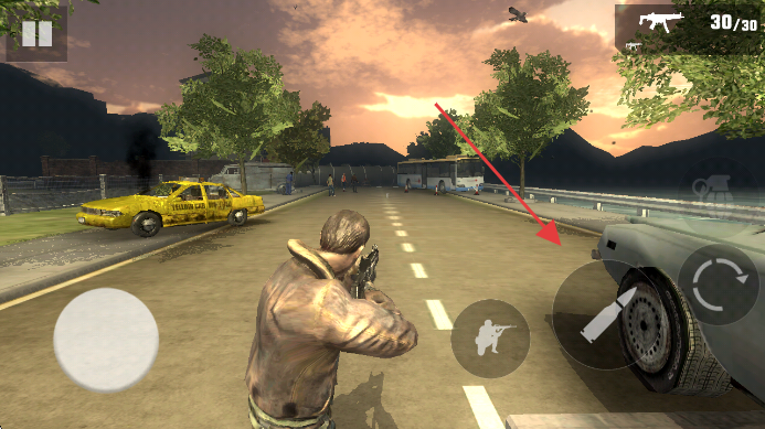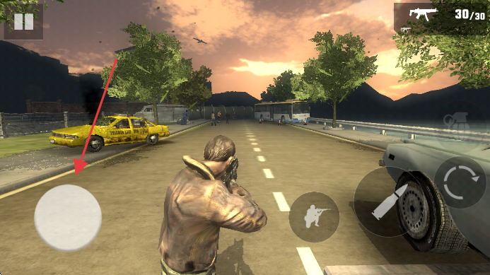 2、通过左下角虚拟摇杆【操控角色移动】,调整站位瞄准敌人。