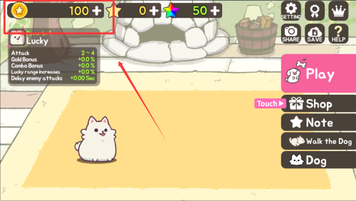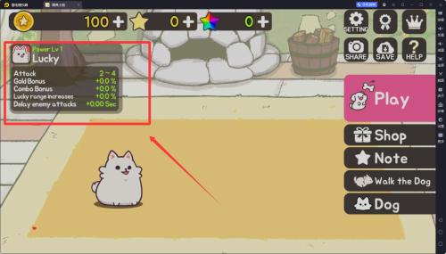 2、还有精彩的小狗的各个属性面板,第一时间记得查看提升,这样会领取大量的资源方便游戏通关。