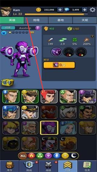 2、英雄策略搭配:选择钢铁战士等战争英雄,策略搭配组合,利用各英雄花样技能,实现秒杀清屏的战斗效果。