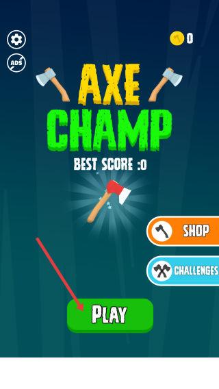 1、开局进入:点击“PLAY”,开始游戏,进入投掷斧头挑战。