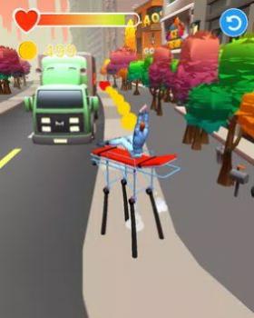 2、多元急救载具:解锁越野救护车、直升机救护车等特殊载具,各车性能不同——越野车型适合复杂地形,直升机可空中躲避地面障碍,提供差异化跑酷体验。