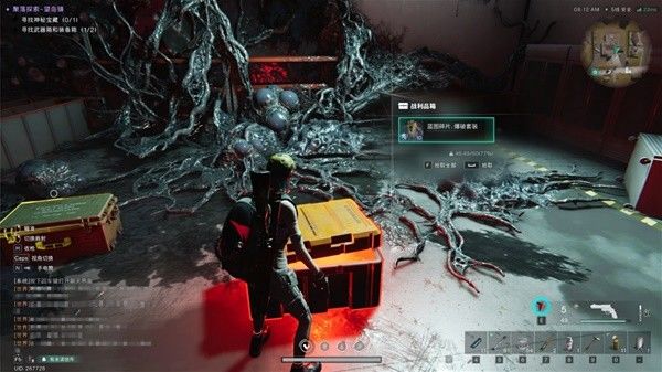 2、遭遇孽生树妖BOSS时,观察其触手攻击前摇,躲避大范围扫击,用高爆发武器攻击发光瘤体等核心部位,拾取场景宝箱内武器、模组。
