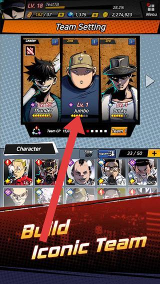 3、在队伍设置,选择“Jumbo”等角色,构建“Iconic-Team”,调整阵容,优化搭配,挑战更高难度。