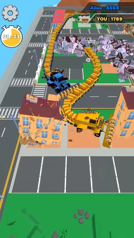 2、拆迁系统:通过观察、预判与操作完成拆除,合理利用载具特性与建筑结构规划路线,连续完成高难度操作触发连击加成,获得额外资源与奖励,灵活应对不同类型的建筑与挑战。