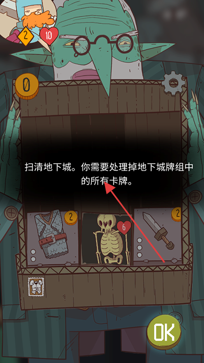 1、打开游戏,玩家的第一项任务便是清扫地下城,处理掉地下城中的所有卡牌。