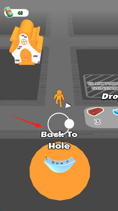1、点击“BackToHole”,进入废品场,操控角色,靠近垃圾,触发吸附,收集基础废品。
