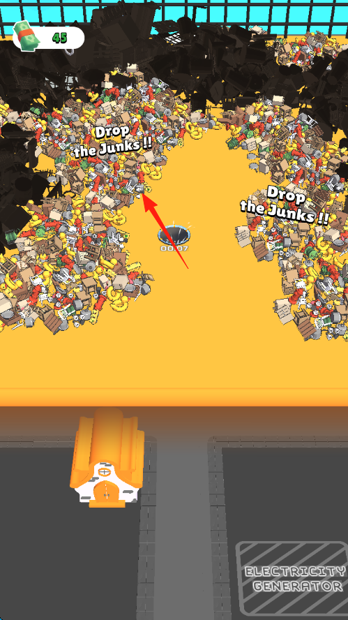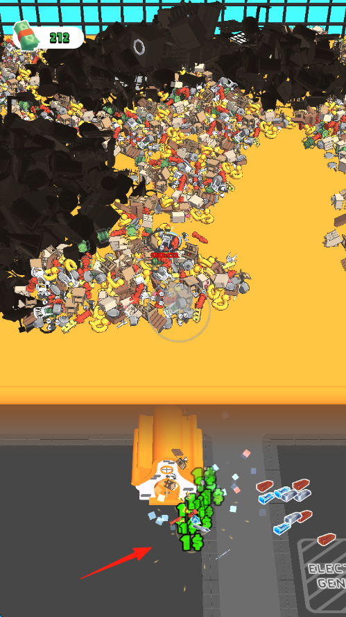 2、在废品堆,集中吸附同类型垃圾,触发连锁收集,注意倒计时,快速清理区域。
